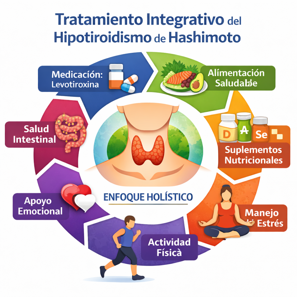 El tratamiento integrativo del hipotiroidismo de Hashimoto ofrece una visión completa y personalizada, combinando medicación, nutrición adecuada, corrección de déficits, manejo del estrés y hábitos saludables. Este enfoque puede ayudar a mejorar los síntomas, apoyar la función tiroidea y aumentar la calidad de vida de forma sostenible.